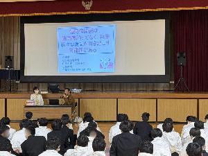 11月18日に1年生を対象に、葛城市健康増進課より保健師さんを講師としてお招きして、防煙教室を実施しました。若いうちからの喫煙が将来の健康リスクを高めることを学び、たばこの有害物質やがんの成り立ち、新しいたばこや受動喫煙について、正しい知識を身につけることができました。