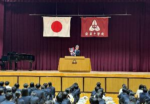 学校生活 4月7日 始業式 いよいよ令和7年度の始まりです。新庄中のみなさんが主役です。学校を盛り上げていきましょう。葛城市から寄贈いただいたマスコット蓮花ちゃんのぬいぐるみも紹介されました。 令和7年度の学校生活 この記事に関するお問い合わせ先 新庄中学校奈良県葛城市新庄248番地電話番号:0745-69-3301ファクス番号:0745-69-9292